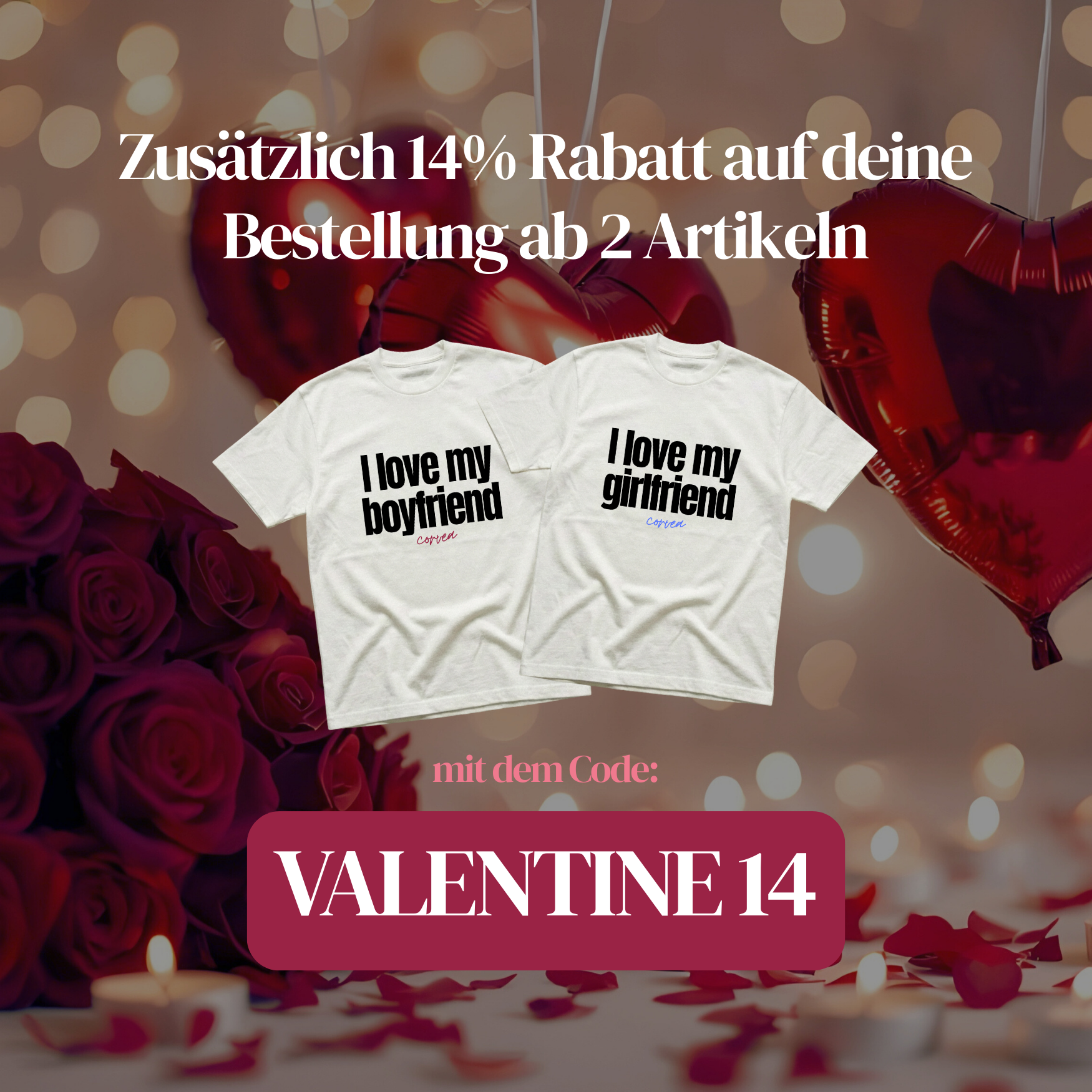 Beim Kauf von 2 oder mehr Artikeln erhältst du zusätzlich 14 % Rabatt mit dem Code VALENTINE14 – on top auf den Sale.